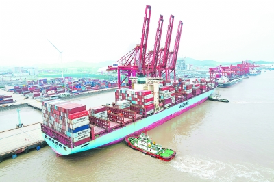 7月17日,燃料油公司在浙江宁波港为“凯斯廷”轮加注5700吨B24生物燃料油,刷新国内生物船燃单船加注量最大纪录。B24生物燃料油是由24%生物柴油与76%低硫燃料油混兑而成,无须改造船舶发动机即可直接使用,在保持与传统燃料同等动力的同时,有效降低碳排放。图为港口现场。 王 蓓 摄 黄长锁 文