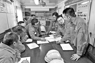 今年,江汉油田构建一体化钻井决策中心,整合多专业力量开展联合攻关,建立钻井标杆、复杂故障等专题数据库,持续迭代优化工艺技术,推动钻井效率大幅提升。上半年,钻井进尺完成计划任务的117%,机械钻速同比提升29.6%,钻井周期缩短19.3%。图为技术人员研讨钻井优化方案。 李占军 摄 石建芬 赵 春 文