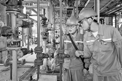 今年以来,上海石化化工部深入推进节水工作,将生活水、工业用水管理作为重点工作进一步强化,通过优化各生产装置管理流程,严格把控用水环节,建立严格的用水监督机制,实时跟踪生产装置用水情况。上半年,该部节约用水1.63万吨,与计划相比下降了36.63%。图为7月25日,该部碳五联合装置操作人员在检查循环水设备运行情况。 高卫洪 摄