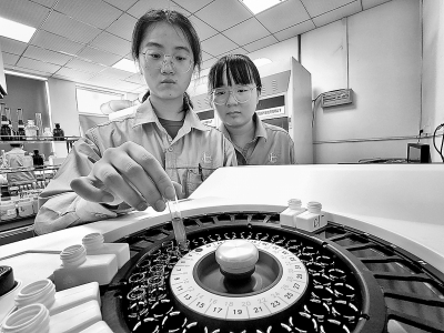近日,南化公司通过 “精准小投入” 采购全自动多参数水质分析仪,对综合污水开展自主检测,实现全部中控水质项目自主分析,每年可节省外包费用近 100 万元。此举大幅缩短水样分析周期,减少人为操作误差,在提升检测效率的同时,显著提高数据准确性与稳定性。图为7月23日,检测人员使用全自动多参数水质分析仪开展检测工作。裴 昱 摄