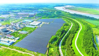 今年以来,江汉油田持续推动油气、新能源、绿色低碳产业融合发展,加快光伏等新能源项目建设,投产首个“光热+”多能互补清洁能源装置,完成首口页岩气二氧化碳吞吐井注碳施工。截至7月底,绿电交易量同比大幅增长,油气业务绿电占比达21.27%,较去年同期提升8.56个百分点。图为该油田位于汉江之畔的光伏发电站。 宋国梁 摄 刘 丽 文