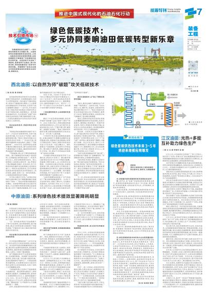 □杨 敏 龚旗林 中原油田以科技创新为引擎,大力推广应用钨合金管式石油加热装置、液压式油气混输泵等核心绿色低碳技术,并系统整合其他成熟节能减排方案,构建起全方位、多层次的绿色低碳生产体系。 “这一系列技术革新不仅显著提升了油气开发效率,更在降低能耗、减少碳排放、推动可持续发展方面取得了突破性进展。”中原油田石油工程技术研究院副院长向俊科说。 钨合金管式石油加热装置:电热转换的绿色革命 在中原油田濮城采油厂120号计量站,钨合金管式石油加热装置正高效运行。来自油井的原油经集输管线进入装置,通过钨合金管的高效传热,原油黏度显著降低,蜡质附着沉积难题得到有效解决,从源头上保障了输送畅通。 油气集输加热环节长期面临能耗高、污染重的挑战。传统燃气加热炉热效率低,排放大量二氧化碳与氮氧化物,是油田碳减排的“硬骨头”。中原油田瞄准关键领域,在东濮老区率先引进应用钨合金管式石油加热装置,实现了加热工艺的颠覆性变革。 “该装置的核心优势在于超高能效与低碳排放。通过精密电磁设计,热转换效率大幅提升,实测数据表明,较传统工艺能耗降低30%以上,碳排放量减少41%~53%。仅120号计量站,年节约天然气就达6.3万立方米,运维成本也显著下降。”濮城采油厂生产指挥中心主任魏超勇算了一笔账。 此外,该装置的材料革新与环境适应性也令人惊喜。钨合金具有高密度、高强度、耐高温氧化的特性,且该装置采用模块化设计,可满足不同井场的灵活部署需求,尤其解决了偏远井区冬季集输冻堵难题,大幅减少了扫线频次与人工干预强度。 这一技术的成功应用,彻底扭转了集输加热高碳模式,为油气田每年节约标准煤数千吨,成为绿色发展的生动实践。 液压式油气混输泵:多相流高效驱动的“心脏升级” 油气混输是油田生产的“血脉系统”。然而,随着油田开发进入中后期,油井分散、管网复杂,传统混输泵面临增压流程长、能耗高、适应性差等难题,尤其在低渗透区块的复杂介质输送中力不从心。 中原油田借鉴先进工业理念,创新研发并部署液压式油气混输泵,对集输系统实施了一场高效“心脏升级”,显著增强了对高含气、高黏度、强腐蚀等复杂介质的适应能力。 以文72-平1井为例,作为该断块末端油井,其集输管线长达3.5千米,外输压力一度高达2.2兆帕,经常需要扫线以维持集输管线畅通,保障油气正常外输。技术人员在该井井场新建液压式混输装置后,井口回压大幅降至0.07兆帕。 “该井回压降低,增加了泵的沉没度,减少了抽油泵和井下管柱漏失,提高了机采系统效率,大大延长了检泵周期。”文留采油厂技术管理室副主任聂兴说。 该装置同时实现了输送效率跃升与能耗降低。在文72南断块油藏的验证中,集输液量提升10%、能耗降低19%,工程投资节省10%以上,彻底解决了偏远井区因管线长、回压高导致的“躺井”问题,充分释放了单井产量,还降低了支线穿孔风险和维护成本。 这一技术的规模化应用,成功突破了长期制约油气田稳产上产的输送瓶颈,每年为两大主力产区节约电量数百万千瓦时,成为支撑油气田绿色开发的核心装备。 构建绿色矩阵:多元技术协同驱动低碳转型 今年上半年,中原油田低碳发展领域捷报频传:绿电发电量突破2亿千瓦时,完成全年奋斗目标任务的62%;采出水余热利用节气115万立方米,超额实现半年目标;绿氢产销量达100吨,完成全年计划的56%……一串串亮眼数据,是油田以绿色转型为笔,在能源革命浪潮中写下的生动答卷。 在中原油田光伏电站,自动化除草清洗机器人穿梭作业,光伏板在智能设备的擦拭下愈加清亮。“引入智能化运维设备后,电站运维效率提升50%,系统效率从82.4%提高至85.2%。”运维人员介绍。通过搭建光伏智能运维系统,远程监控、故障预警、效率分析实现“一键掌控”。 在明一、明二中转站,余热利用项目建设正酣;在黄庄变电站,新能源高比例接入优化项目跑出“加速度”;在绿氢生产车间,纯度达99.999%的氢气源源不断产出……从图纸到现场、从规划到落地,一个个重点项目高效推进,一项项创新技术让油气生产越来越绿色低碳。 “我们正聚力攻关核心技术,力争让更多国产化绿色装备在油田落地生根。”中原油田新能源开发中心经理张诚说。