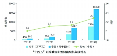 阅读提示 近年来,我国新型储能快速发展,在新型电力系统中作用日益凸显,有力促进了新能源开发消纳,提高了电力系统安全稳定运行水平。 日前,国家能源局发布《中国新型储能发展报告(2025)》指出,“十四五”以来,我国新型储能发展政策的“四梁八柱”初步构建,新型储能稳步发展。截至2024年底,已建成投运新型储能7376万千瓦/1.68亿千瓦时,装机规模已占全球总装机规模超过40%。新型储能技术路线“百花齐放”,涵盖全球工程应用的主要技术路线,调度运用水平稳步提高,有力支撑新型电力系统建设。 国际新型储能发展形势 2015年,在第21届联合国气候变化大会上,近200个缔约方共同签署《巴黎协定》,设定了全球实现温室气体净零排放的目标。气候变化协定签署以来,全球能源转型进入快车道,可再生能源规模迅速增长,由此带来的高比例可再生能源接入与高比例电力电子设备应用的“双高”问题凸显。在此情景下,新型储能成为保障电力系统安全稳定运行、促进全球能源转型发展的关键技术装备,世界各国积极出台政策措施,通过技术研发激励、市场规则创新、试点项目应用等措施推动新型储能发展。 全球加大新型储能战略投入。2024年,全球能源转型和区域能源供需紧张等因素推动新型储能需求快速增长,美国、欧盟、英国等国家和地区持续加大新型储能技术产业发展支持力度,出台多项投资、补贴、税收优惠政策,积极布局新型储能技术攻关,打造独立自主的新型储能产业链。 国际新型储能市场快速增长。2024年,在政策支持和市场需求的双重驱动下,全球新型储能装机快速增长。截至2024年底,全球已投运新型储能项目累计装机规模约1.8亿千瓦,较2023年底增长约98%,新增装机规模约0.9亿千瓦。其中,美国新增装机约1100万千瓦、英国新增装机约60万千瓦、澳大利亚新增装机约90万千瓦。2024年全球储能电池出货量达3.7亿千瓦时,比上年增长约65%。全球储能系统出货量为2.4亿千瓦时,比上年增长超60%。 新型储能技术不断拓展应用。2024年,各国持续开展新型储能技术创新探索。电化学储能领域,澳大利亚推动新型锂离子电池硅负极材料应用;美国和日本布局以铁-空气和锌-空气为代表的金属空气电池技术研究,正在推动技术示范。长时储能领域,美国、德国、日本等国家正在推进绝热压缩空气储能技术研究,英国建设了350千瓦/2500千瓦时液态空气储能中试平台。储能调控领域,美国、欧盟的研究机构在新型储能优化运行、集中控制等方面进行技术布局,英国、德国等国家探索新型储能智能化调度技术,推动新型储能替代电网投资。 多个新型储能重大项目落地。2024年,各国积极推动不同应用场景新型储能项目实施,多个大型新型储能电站落地应用。美国加州投运单站规模328.7万千瓦时锂离子电池储能项目,缅因州建设8.5万千瓦/850万千瓦时铁-空气电池储能系统。英国苏格兰地区建设30万千瓦/60万千瓦时构网型储能项目,提升苏格兰电力保供能力。比利时建设70万千瓦/280万千瓦时锂离子电池储能项目,单站规模欧洲最大。在中东和非洲地区,沙特红海新城独立微电网项目投运,配置130万千瓦时智能组串式构网型储能系统;南非最大的光伏储能电站投运,其中锂离子电池储能规模为22万千瓦/114万千瓦时。 我国新型储能发展情况 在“四个革命、一个合作”能源安全新战略和“双碳”目标引领下,我国加快规划建设新型能源体系,推进新型电力系统建设,新能源保持快速发展,对电力系统灵活调节能力提出更高要求。新型储能作为支撑构建新型电力系统的关键技术,是促进大规模新能源开发消纳的重要支撑,是实现电力系统安全稳定运行的重要保障,是促进各行业低碳用能的重要手段。“十四五”以来,我国新型储能支持政策日益完善,技术创新和产业发展不断取得突破,装机规模快速增加,新型储能行业逐步由商业化初期步入规模化发展阶段。 第一,新型储能政策体系不断完善。 国家层面顶层设计进一步明确。“十四五”以来,新型储能政策体系不断完善,先后印发《关于加快推动新型储能发展的指导意见》《“十四五”新型储能发展实施方案》,对新型储能规模化、产业化、市场化发展作出总体部署,提出促进新型储能高质量发展的重点任务。制定《新型储能项目管理规范(暂行)》,明确新型储能项目规划布局、备案建设、并网调度、监测监督等环节管理的具体要求。 2024年,“发展新型储能”首次写入政府工作报告。《中华人民共和国能源法》颁布,明确指出“推进新型储能高质量发展,发挥各类储能在电力系统中的调节作用”,从法律层面明确新型储能功能定位。 省级支持政策体系持续健全。“十四五”以来,各省区市因地制宜出台促进新型储能发展的指导意见、发展规划、实施方案等,提出新型储能发展的思路和目标,从技术、产业、市场机制等方面支持新型储能发展。 2024年,各地通过容量租赁、电力现货市场、辅助服务、容量补偿等方式,积极探索创新市场模式和成本疏导机制,促进新型储能可持续发展。多个省明确容量租赁指导价格。山西、广东、山东、甘肃、蒙西电力现货市场和国网省间现货市场转入正式运行,湖北、浙江、福建、陕西、安徽、辽宁、河北南网等7个电力现货市场连续结算试运行,南方区域电力市场作为全国首个区域电力市场完成整月