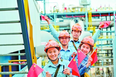 “国庆我在岗”是青年的坚守,“我爱你中国”是青春的告白!镇海炼化新入职员工与国旗同框,以最质朴的方式,祝福祖国。钱 蕾 摄