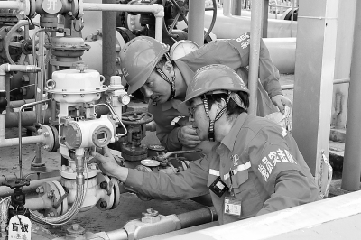 西南油气分公司采气四厂充分发挥党员先锋模范作用,将“岗区队室”平台建设与生产一线相融合,通过增设党员安全监督岗,明确安全职责、规范流程、细化任务,强化安全环保风险管理和隐患排查治理。图为10月5日,采气四厂党员在威荣气田集气总站开展隐患排查工作。 叶嘉焰 摄