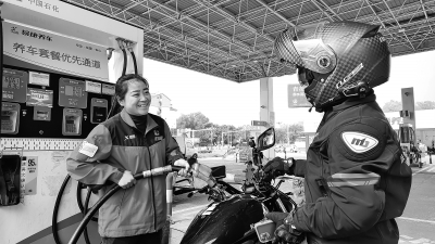 四季度以来,随着气温下降,江苏徐州石油坚持“以客户为中心”理念,积极开展微笑服务、友情提醒、送货到车等暖心服务,促进油品零售量和客户满意度双提升。截至目前,该公司汽油流失客户整体回流率在5.4%以上。图为10月30日该公司睢宁红叶加能站员工在为摩托车骑手加油的同时,提醒其做好安全防护。 刘兹文 摄