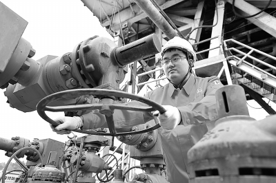 今年以来,西南石油工程公司重庆钻井分公司以攻坚创效行动为抓手,以奋发有为的状态,跑出钻井生产加速度。截至目前,该公司国内外累计钻井进尺44.51万米,创历史同期新高。图为近日该公司70218井队技术人员在资页19井检查节流管汇闸阀。罗卫东 摄