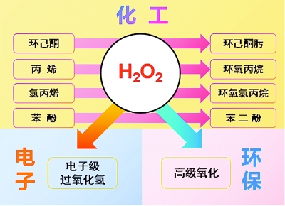 在有机合成领域,过氧化氢是碳氢键、碳碳双键等官能团的最重要氧化剂,凭借自身优异的选择性和高活性,能与众多有机化合物发生羟基化、环氧化等反应,在漂白、化学合成、环保、电子、食品、矿业等多个领域都发挥着重要作用。在航空航天等高科技领域,过氧化氢也有其特定用途。