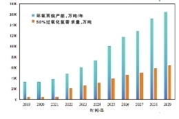 与此同时,过氧化氢的市场需求也持续增长。据统计,全国过氧化氢年需求量约为1700万吨。