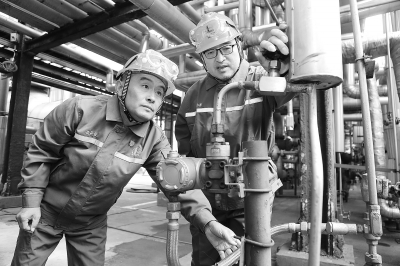 “雷霆行动”开展以来,齐鲁石化运维中心党委强化党员干部安全示范引领作用,抓实党小组带班组、做实党员责任区创建,深化“党员一带一”机制,推动隐患彻查彻改,确保各阶段任务按期完成。图为11月3日,在党员责任区内,该中心炼油仪表车间党员潘荣金(左)带领员工对第二硫黄回收装置开展隐患排查。李建强 摄