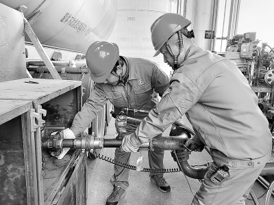 近日,安庆石化按照集团公司有关要求,对装卸设施进行系统性排查,同时,对危化品运输、装卸规章制度、装卸过程管理等进行梳理,确保危化品装卸过程安全受控。图为11月5日员工进行液化气充装前的检查确认。 邱 林 摄 李丁玲 文