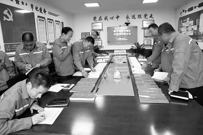 近日,胜利油田油气集输总厂管道巡护管理中心党总支组织开展“展评提素学规矩,学思践悟强党性”活动,扎实推进党建工作标准化、规范化建设。活动中,与会党员本着虚心学习、相互借鉴的态度,认真查看会议记录本和党建工作日志等资料,深入对照查找自身在学习和工作中的短板与不足,进一步明确了改进方向,切实达到了以展促学、以评促改、互学互鉴、共同提升的效果。图为该中心党员翻阅学习参展资料。王守华 摄 刘敬源 管仁海 文