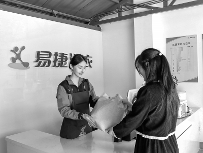 11月6日,江苏石油首座自建自营“易捷洗衣”工厂在江苏镇江市开业。工厂聚焦日常洗护需求,提供衣物干洗、专业熨烫、洗鞋等多元化服务,同时联动镇江市内20家易捷便利店作为收衣点,构建“就近收衣+集中洗护+便捷取件”的一站式服务模式,让客户轻松享受优质洗护服务。图为客户领取洗好的衣服。王昕妍 摄 李奕函 文