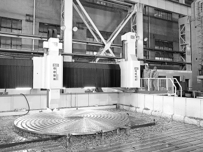 日前,南化化机公司使用新引进的数控平面钻铣中心,成功解决了大型不锈钢渐开线管板变形、曲线铣削编程复杂等难题,高效完成管孔钻孔、镗孔作业,相较于现有卧式深孔钻,作业效率提升40%,实现一次交检合格率100%。图为数控平面钻铣中心加工现场。裴 昱 摄