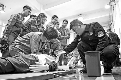 11月11日,青岛炼化组织员工开展心肺复苏专项培训。培训通过理论讲解、教学互动、现场示范等多种方式,帮助员工系统学习掌握科学的现场急救知识与实操技能,进一步提升应对突发事件的应急救援处置能力,为筑牢生命安全防线夯实基础。图为员工现场学习心肺复苏操作。刘 强 摄