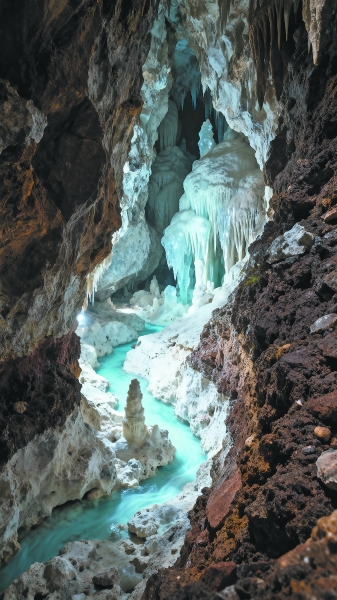 本报记者 闫坪卉 从青藏高原出发,跨过重重雪山,出现了一片被群山环绕的神秘区域。 把视线拉高到数万米高空,俯视地球,发现这里是一个巨大的凹陷,它的面积26万平方公里,像个陨石坑,这就是四川盆地。 如果给四川盆地灌满水,它将成为世界上最大的淡水湖。 数亿年前,这里真的是一片超级内海。在它的地下,藏着一部宏大的地质史诗。 距今约两亿年前,印度板块如同一头巨鲸,以磅礴之势撞向欧亚板块。这一撞,山脉隆起,盆地凹陷,形成了四川盆地的雏形。就在它的地下,孕育着我国最丰富的天然气资源。 多期构造运动使四川盆地地下形成了复杂的地质构造。众多的褶皱带和断裂带,对地下资源的分布产生了深远影响。目前,人类对地下的探索都停留在地表,即便是最深的钻井,也远未触及地壳下限。 0~200米 松散层和沉积岩 这里有土壤和浅层地下水。四川盆地降水丰富,地表水渗透到地下,形成了丰富的浅层地下水资源。这是大自然赋予四川盆地的宝贵财富,滋养着这片土地上的万物。 200~1000米 浅层天然气和煤、铁、钾盐资源 这里孕育着丰富的浅层天然气和煤、铁、钾盐等资源。沙溪庙组布满了多孔海绵样的砂岩,其中出现浅层天然气资源。1.6亿年前,这里是河流三角洲,泥沙堆积成岩,把天然气封存在孔隙里。 1000~3000米 中浅层天然气资源和地下溶洞 在地下2000米处,有丰富的中浅层天然气资源。中江气田从这里采出的天然气,顺着管道输至千家万户,变成厨房灶台上跳动的火苗。这里还有瑰丽的溶洞。富含碳酸钙的地下水在石灰岩中流动,经过漫长的岁月,溶解和沉淀作用塑造出了神奇的溶洞景观,留下了这些富含海洋生物化石的石灰岩。 3000~10000米 深层超深层天然气资源 当深度达到4500~5500米时,便是须家河组。这里的砂岩和煤层非常致密、孔隙小,像压缩过的夹心饼干,孕育着深层超深层天然气资源,也藏着煤炭。攀枝花的钢铁、重庆的汽车,都离不开这里的能源补给。 现在我们来到6000米深的雷口坡组,其岩层像被雨水冲刷过一样——这是2.3亿年前古海洋留下的痕迹。雷口坡组的石灰岩像千层蛋糕,孔隙里藏着高含硫天然气。 这是天然气经过净化产出的硫黄产品,金灿灿的,可以制作成化肥,服务农耕。