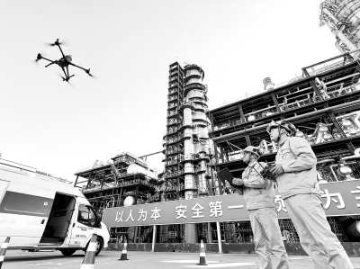 今年以来,齐鲁石化构建“高空+地面”VOCs(挥发性有机物)立体监测网络,融合无人机高空监测与走航车地面监测优势,将无人机技术、移动监测与智能数据分析结合,实现监测数据采集、传输、分析和溯源一体化处理,可快速识别异常区域并精准定位污染源。11月,该立体监测网络实现公司监测区域全覆盖。图为11月27日检验计量中心员工遥控无人机执行大气数据采集与监测任务。李雪梅 摄