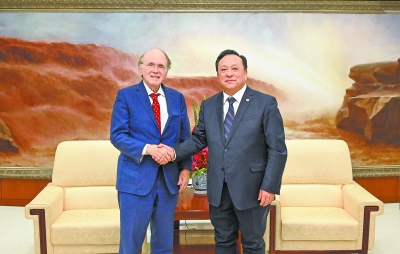 12月9日,集团公司董事长侯启军在总部会见标普全球公司副董事长丹尼尔·耶金,双方就全球能源市场形势、地缘政治、油气企业转型发展,以及进一步深化双方合作等话题交换了意见。图为会见现场。本报记者 胡庆明 程 阳 摄影报道