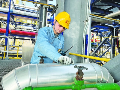 金陵石化化工一部抓好设备完整性管理和生产优化调整,截至11月底,累计产氢9.62万吨,提前1个月完成全年产量和效益指标。图为12月6日员工在水煤浆装置低温甲醇洗单元现场巡检。钱宏跃 摄