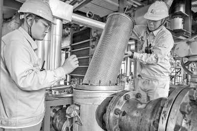 扬子石化24家劳模工作室围绕节能降耗、安稳运行、降本减费等重点工作,开展“创效先锋”行动。各工作室以小改小革、外委转自干为抓手,常态化开展经验分享与交流,充分发挥辐射带动和示范引领作用,全力推进降本增效。图为12月10日,刘畅劳模工作室成员进行过滤器清洗,节约费用万余元。