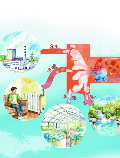 不少人好奇 我的热量是如何被搬到地上的 这时候 就需要用上“能量搬运员” ——地热水 地下3000米以内的地热资源 多为水热型地热资源 存在大量被加热的地下水 人类需要打两口井 地热水通过其中一口井来到地面 并在板式换热器中 将热量传递给冷循环水 而后通过另一口井回到地下 循环往复不浪费! 拿到热量的供暖循环水 就可以根据温度应用在 发电、供暖、养殖、温泉等场景中了! 现代地热工程的核心 原则是“取热不耗水” 也就是说不会造成 地下水位下降、地面沉降等问题 大家可以放心~