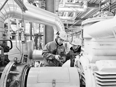 金陵石化围绕拓市扩销提效、原料自产供应、运行优化降本、生产费用管控目标开展年终挖潜增效工作。以市场为导向抓好原油采购降本,深入优化产品结构,合理安排上下游装置衔接分工,全力以赴冲刺全年收官。图为近日员工监测机泵运行工况。王 恒 摄 陈伟伟 文