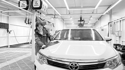 12月9日,浙江石油首座洗车工场在温州石油鑫忠加能站投运。与普通易捷养车店相比,该工场规模显著升级,配置2条专业流水线,可同时容纳4辆车进行人工清洗,洗车峰值效率达12辆/小时,相较传统洗车服务,在提升清洗质量的同时,实现服务效能的显著跃升。图为洗车工场员工服务客户。叶如意 摄 廖卫东 文