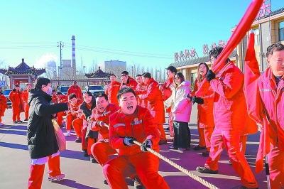元旦当天,华北油气分公司采气二厂在内蒙古杭锦旗工区基地组织开展“聚力采气迎新年,同心筑梦启新程”文体活动,设置拔河、篮球、气排球等项目。员工们在比赛中团结协作、奋勇争先,展现出良好的精神风貌。活动营造了欢乐祥和的节日氛围,增强了队伍凝聚力,为新年各项工作开展提振了士气。 图为拔河比赛现场。 姚 冬 摄 张 敏 文