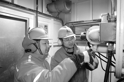 近日,针对海上大风寒潮天气,胜利油田海洋采油厂海上平台落实防寒防冻措施,组织干部员工增加易冻部位和伴热带巡检频次,充分利用自动化监控系统准确掌握加热器、热媒炉等保温设施运行状态,筑牢海上安全生产防线。图为1月11日胜利油田中心三号平台员工巡检热媒炉运行情况。 张 灿 摄
