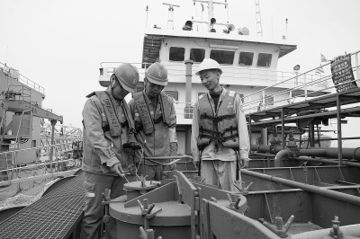 建立风险防控网络 构建安全物流通道 安庆石化严抓隐患排查治理闭环管理,建立“智能感知+快速响应”的风险防控网络,确保隐患早发现、早处置,为原料进厂、产品出厂构建安全物流通道,保障了生产经营运行平稳有序。图为员工在危化品码头检查装置。 郑 武 摄 郝书敏 文