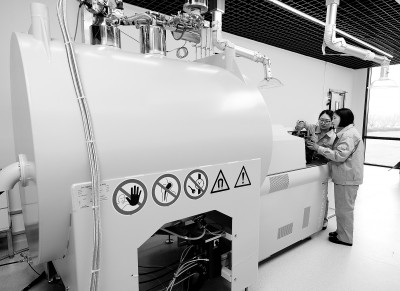 近日,大连院引入的傅里叶变换离子回旋共振质谱仪(FT-ICR MS)完成调试,投入使用。傅里叶变换离子回旋共振质谱是一种超高分辨率的质谱技术。该仪器的投用可提升该院石油化工分子组成分析的技术实力,为油品研究、工艺优化提供技术设备支撑。图为近日科研人员操作傅里叶变换离子回旋共振质谱仪。王晓峰 摄 赵国利 文