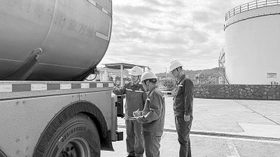 福建石油全面开展HSE综合检查,夯实安全主体责任,通过强化隐患排查、物流管理、安全培训等措施,严格执行安全操作规范,督促问题整改落实,确保生产经营安全平稳。图为近日福建漳州石油铜陵油库员工对油罐车进行安全检查。王鸿儒 摄
