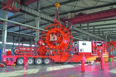 近日,石化机械自主研发的5台(套)连续油管作业设备已完成出厂试验,即将发往非洲。这批设备是针对客户快速作业需求开发的车载式SLG630和拖装一体式SLG450连续油管作业机。 车载式SLG630采用油管滚筒与操作室一体式车载布局,可在非铺装道路情况下满足36吨油管运输要求;拖装一体式SLG450无须现场穿管及管缆连接,1小时内即可完成井口安装,满足深层、超深层连续油管作业要求。 历经近20年的持续研发,石化机械四机公司已开发出系列车、拖、橇产品,满足陆地、海洋、沙漠、极地等多种作业环境要求,成功出口到中东、南美、非洲等市场。 梁海云 李国荣 摄影报道