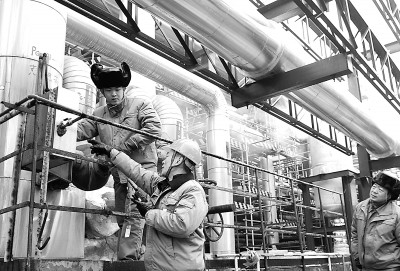 春节临近,齐鲁石化积极开展节前隐患排查整治专项行动,组织精兵强将进行拉网式隐患排查,重点检查防冻防凝措施落实情况、冬季生产薄弱环节和易燃易爆重点部位等,对查出的问题立查立改,不让隐患“过节”。图为2月3日,齐鲁石化炼油厂员工对易冻凝部位进行隐患排查。王 斐 摄