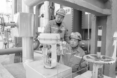 今年以来,沧州炼化炼油三部创新开展党员群众结对活动。他们组织技术精湛、经验丰富的班组党员与群众结对子,携手落实安全生产责任,通过一对一帮带、点对点攻坚,将安全管理融入日常巡检、规范操作、隐患排查全过程,为装置安全平稳运行筑牢坚实防线。图为2月4日,焦化三班党员高峰(左)和群众罗庆联合检查现场控制阀状况。张 婷 摄