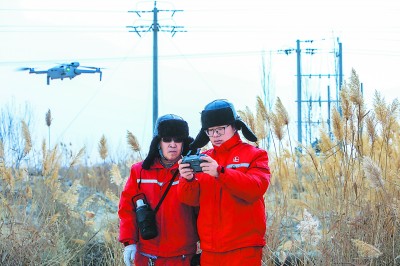 崔洪武 张 磊 图/文 翻越沙包、穿行戈壁、钻过灌木林、横跨塔河冰面、踏过冰封田埂…… 2月15日9时30分,记者跟随西北油田工程服务中心塔河供电管理部外线班班长李照军和徒弟胡龙杰一起巡检。 外线班守护着西北油田南疆大漠油区4000多公里输电线路的安全,皮卡到达不了的偏远地段,只能徒步巡检。“今年春节假期长,电力保供压力大,我们要重点巡护高负荷线路。”56岁的李照军,在这个岗位已经干了30年,“今天我们主要巡检10千伏线路,步行路段得走五六个小时。” 每爬上一座沙包,李照军都要停下喘息许久。刺骨的寒风里,贴身的工装被汗水浸透。巡检路上,胡龙杰就爱听师傅讲油田开发的老故事,“师傅就是个宝藏,对每一根电线杆的编号、每一段线路的建设历史都如数家珍”。休息时,李照军也会凑到徒弟身边,认真学习电子巡检图的操作方法。 老班长练就了一双“鹰眼”,对线路设备隐患一查一个准,凭借几十年经验精准“把脉问诊”;新一代用上无人机、红外成像仪、数字化巡检系统,巡检效率大幅提升。一老一新,传统经验与现代科技完美结合。 直至19时,这趟巡检任务才全部完成。师徒俩忙着记录数据,整理资料。他们坚定的身影融入暮色,把责任担当写进了大漠的新春灯火中。