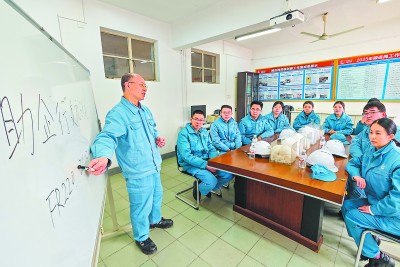 刘玉福 张 斌 图/文 3月6日,我们专门跟随江苏省卓越技师、仪征化纤合纤二部主任技师顾连岗上了一天班——看看1987年进厂从普通的纺丝操作工成长为“蓝领专家”的顾连岗,是怎么“卓越”工作的。 7时,顾连岗像往常一样从家里骑自行车出发,提前半个小时进入工厂,换好工装后到短纤七装置了解现场中夜班生产情况。 短纤七装置有8条生产线,一个多小时的巡检,他查看了工艺参数,并和岗位员工交流,仔细了解新线运行情况。 9时,他来到装置的组件组装间,指导低熔点组件的组装再攻关,以进一步提高低熔点产品质量,并根据工艺要求,精细调整组件装砂量。此前,他发明的低熔点复合纺组件组装操作法,在上机后,组件无一漏浆,获中国石化技能人才创新成果二等奖。 随后,顾连岗来到劳模创新工作室,主持2026年创新课题交流。以他名字命名的劳模创新工作室,目前已成立10多年,被评为中国长三角地区劳模工匠创新工作室。他带领团队平均每年攻克生产难题20多个,主持攻关的“提高熔喷布产品质量”获全国能源化纤地质系统优秀职工技术创新成果一等奖,形成的“大纺位低压生头技术”入选全国总工会首届大国工匠展。 此次交流的主题是助企行。同时,顾连岗给年轻的技术员讲解生产工艺控制情况,分享他走访用户的经验。 11时50分,他来到食堂吃午饭,然后回到办公室小憩片刻。 13时,顾连岗在劳模创新工作室准备课件。13时40分,他准时来到短纤七装置,利用副班给一线员工进行卷绕生头培训,讲质量控制中的注意重点,还不时回答员工的问题。 15时,参加完副班培训的他,带着徒弟李娟和新入职的大学毕业生魏开璇到生产现场,因为当天是工作室每月一次的师徒谈心日。2016年他与李娟签订了师带徒协议,李娟当时还是一名普通操作工,如今已经成长为管理技术人员。李娟说:“我是师傅的第9个徒弟,得益于师傅耐心教我,积累了好多经验,如今已经能够独立从事工艺技术管理工作。” 跟李娟和魏开璇在现场交流完,他又回到劳模创新工作室,对今天讨论的课题进行汇总。17时20分,他下班回家。 “离退休还有两年多时间,我想在有限的工作时间内,把知识、经验传下去,为建设新仪化作贡献。”顾连岗说。 多年来,凭借精湛的技能水平,顾连岗被评为中国石化特级技师、扬州市首席技师、江苏省卓越技师、江苏省劳动模范,被全国能源化学地质系统评为大国工匠。