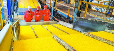 中原油田普光气田是我国最大的硫黄生产基地,今年以来,聚焦“保春耕、稳民生”目标,持续做好春耕化肥原料硫黄的生产,产量保持高位运行。截至3月15日,产量同比增长3.5%。图为近日气田员工检查硫黄产品质量。 汪作庆 摄 于银花 文