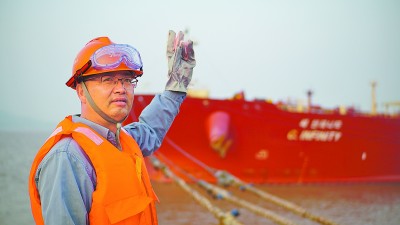 李劲松 镇海炼化港务储运部 泊位大班长 我们的工作室叫东海结 东海是咱们这片海 结是绳结 三十六年的心 都系在这片海上了 卞江岐 朱诗雯/文 何 雯/图 张凌志/视频 东海之滨,镇海炼化算山码头。初春时节,海风依旧带着寒意,掠过缓缓靠岸的巨型油轮。 镇海炼化港务储运部泊位大班长李劲松站在码头前沿,拿着对讲机,沉稳地发出指令:“算山一号泊位,准备靠泊。” 码头上几位班组员工早已就位。20分钟后,30万吨原油轮在拖轮辅助下,如移动的山岳缓缓靠向泊位。李劲松紧盯船方手势,接过飞来的撇缆绳,顿时,虎口震得生疼,手上动作却丝毫未乱。 引缆、连接、释放,防止绳索夹入护舷缝隙。引缆与钢缆连接完毕,绞缆机开始转动。倒缆、横缆、头尾缆……20根粗壮的钢缆,按照“倒四、横四、头尾各六”的顺序,一根接一根,被精准地套进脱缆钩。 两个半小时,巨轮靠泊完成。李劲松用力拉了拉手中的缆绳,再次检查绳结是否牢固。这个动作,在过去的36年,他重复了不下十万次。 第一个“绳结” 1990年冬,18岁的李劲松第一次站在算山码头三号泊位。海风凛冽,师傅手把手教他打出了人生第一个水手结。那是他与码头的第一个“绳结”,系住了青春与热爱,从此便再也没有解开。 “码头稳,船才稳。”师傅的话,像一颗种子,埋进了这个年轻人的心里。从此,他的人生便与这2300米的海岸线紧紧系在了一起。 最初的岁月,是“体力”时代。上万吨的油轮靠泊,靠的是人力。李劲松和工友们喊着号子,将沉重的缆绳死死勒在肩头,用脚步和蛮力,对抗着风浪,将船只一寸寸拖进泊位。如今是数智时代,面对30万吨级的海上巨无霸,有了泊位船岸一体化监控平台,船还没靠岸,屏幕上已经把风速风向、潮流潮位等信息算得清清楚楚。缆绳测力系统实时显示每根缆绳的拉力,超载会自动报警。最新的系泊绞车只需轻轻按一下按钮,就能自动收缆、放缆,还能根据潮汐变化和船舶晃动自动调整拉力,始终保持恒定张力。 李劲松见证了码头吞吐量从百万吨级跃升至数千万吨级,港机设备如输油臂等从手动对接升级到液压遥控对接。 时代在巨变,设备在迭代,但李劲松说,有些东西从未改变:“无论工具多先进,最终确保安全的,还是人的责任心。我不到现场亲眼看看,心里就不踏实。” “我不顶上,谁顶上?” “急难险重我先行”,这不仅是李劲松作为一名老党员挂在嘴边的话,更是他心中系紧的第二个责任之“结”。 码头作业,最怕异常天气。2025年8月21日傍晚,李劲松正在泊位巡检。天色骤变,狂风暴雨毫无征兆地席卷而来。就在这时,对讲机里传来急促的呼叫:“2号泊位!多条缆绳异常,有断缆危险!”那里正靠着一艘满载油品的巨轮。 “收到!稳住!我马上到!”李劲松转身就冲向2号泊位。平日个把小时的巡检路程,硬是10分钟就跑到了。他浑身湿透、喘着粗气出现时,成了现场所有人的主心骨、定海针。 没有片刻喘息,他迅速判断险情:巨浪不断撞击船体,钢缆发出刺耳的“嘎吱”声。他嘶哑却镇定地指挥:“你操作绞车!你们两个,跟我上!” 风雨声中,李劲松的口令声、对讲机的电流声、应急绞车的嗡鸣声,以及海浪震耳欲聋的咆哮声混杂在一起。他凭借30多年积累的经验,在最恰当的间隙,果断指挥加系缆绳,调整各根缆绳拉力分布。雨水和汗水不断模糊视线,他只能不断地用手抹一把脸,经过20分钟抢险,缆绳的异常终于得到控制,巨轮恢复了稳定。直到这时,他才放松下来。 这拼尽全力的半小时,是李劲松担当的缩影。人手紧的时候,他总会带头驻守岗位,吃睡都在码头。“我是党员,也是班长,这时候我不顶上,谁顶上?”在他心里,守护这里的安全运行,是高于一切的责任。 “是绳结,也是心结” 2022年,李劲松被评为公司“炼化工匠”。荣誉背后,是他对“传承”二字的深刻理解,这构成了他心中的第3个结。 尽管自动化水平提升,“打绳结”的直接需求少了,但李劲松仍坚持教会每一位新员工。在他看来,“打绳结是码头工的基本功,拴住的是安全,是责任”。 担任大班长后,他从师傅变成了“总教头”。他会给员工制订详细的培训计划,组织技能比武、现场教学。对于新员工,他推行“一对一”老带新模式,不仅“授其以渔”,更“助其以需”,关心他们在生活中遇到的困难。他做给年轻人看,带着年轻人干,将30余年的经验与工匠精神,编织进新一代码头人的成长脉络中。 2022年,“东海结”劳模创新工作室正式成立。工作室的名字是他自己起的,“东海是咱们这片海,结是绳结,也是心结。36年的心,都系在这片海上了”。 工作室成立后,他带着年轻人干了不少事。模拟各种复杂海况下的系泊方案,把30多年遇到过的大风大浪、险情处置,一个一个复盘、总结,编成案例教材。 工作室墙上挂着十几捆缆绳,谁想练绳结随时可以练。泊位上的人几乎都是他的徒弟。有的跟他干了20多年,有的才刚来半年,每个人都从他手里学过那个绳结。 2024年,“东海结”劳模创新工作室搬迁至1号泊位。工作室的创新攻关方向分为“海”“港”两大方面,将持续对智能化自动对接输油臂、船岸安全延伸管理、港机设备平稳运行等项目进行创新攻关。每一项攻关,都跟窗外那一根根绷紧的缆绳有关,跟“码头稳船才稳”的道理有关。 李劲松看了看墙上的缆绳,又看了看移动端的泊位监测系统,说:“老物件不能丢,新事物