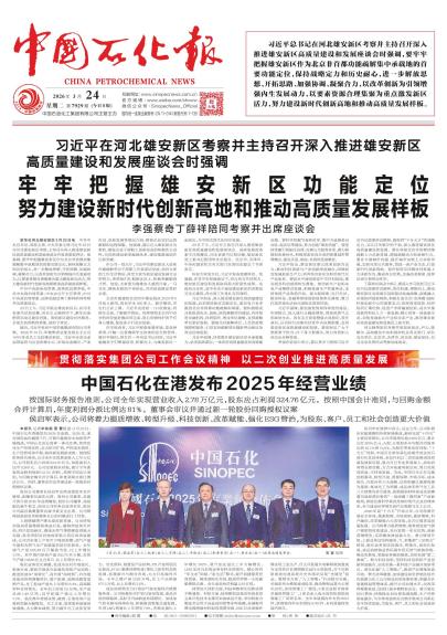本报讯 记者宋铁毅 雷 蕾报道:3月23日,中国石化在香港发布2025年业绩。2025年,面对国际油价震荡下行、可替代能源冲击加剧等严峻挑战,中国石化充分发挥一体化优势,持续优化生产经营安排,全力拓市扩销,严控成本费用,生产经营保持平稳,取得新进展新成效。按国际财务报告准则,公司全年实现营业收入2.78万亿元,公司股东应占利润324.76亿元,每股盈利人民币0.268元。公司注重股东回报,预计全年派发现金股利每股0.2元(含税),按照中国会计准则,与回购金额合并计算后,年度利润分派比例达81%。同时,董事会审议并通过新一轮股份回购授权议案。 股份公司董事长侯启军出席业绩发布会并致辞,副董事长赵东出席。股份公司董事、总裁万涛介绍2025年业绩概要,股份公司董事、高级副总裁牛栓文,股份公司财务总监寿东华、股份公司副总裁兼董事会秘书黄文生出席。公司管理层就投资者和媒体关心的问题进行了回答。 上游增储增产降本取得新进展。公司持续加强高质量勘探和效益开发,渤海湾盆地页岩油、四川盆地新区、海域天然气等勘探取得重大突破,胜利济阳页岩油国家级示范区高质量建成,公司页岩油上产至百万吨级规模,油气产量当量和天然气全产业链盈利创历史新高。全年油气产量525.28百万桶油当量、比上年增长1.9%。其中境内原油产量255.75百万桶,天然气产量14566亿立方英尺、比上年增长4%。 炼化业务优化调整,低成本应对市场变化。炼油方面,紧贴市场优化装置负荷和产品结构,推进低成本“油转化”、高价值“油转特”,有序推进炼油结构调整项目,增产航煤、润滑油脂等适销产品,化工轻油产量比上年增长8.4%,高端碳材料全国领先。全年加工原油2.5亿吨,生产成品油1.49亿吨,其中航煤产量比上年增长7.3%。强化集中营销优势,硫黄、石油焦等产品盈利贡献大幅增加。化工方面,发挥盈利装置创效潜能,大力降本减费,努力提升化工业务竞争力。优化原料、装置及产品结构,PX产量再创历史新高,POE(聚烯烃弹性体)等化工新材料加快发展,拓展新兴与细分市场,大力开拓海外市场。全年乙烯产量1528万吨,化工产品销量8712万吨、比上年增长3.6%。 成品油销售全力打造油气氢电服综合能源服务商。公司统筹拓市扩销与转型发展,油品市场份额稳固,高标号汽油销量持续增长。加快加气和充换电网络布局,积极推进氢能交通发展,车用LNG销量比上年增长74%,充换电量比上年增长182%,氢气加注量比上年大幅增长,LNG加注与加氢业务保持全国领先。精心培育“车生态”网络、“家生活”模式,提升易捷服务经营质量。推进国际化布局,稳居世界第一大低硫船燃供应商。全年成品油总销量2.29亿吨。 持续加大创新力度,科技和数智化创新成果不断涌现。科技方面,陆相断陷盆地页岩油差异立体开发技术支撑页岩油效益开发,非均相复合驱技术应用于高盐高钙镁等多种油藏,高端聚丙烯电缆绝缘材料取得重要突破,60K巨丝束碳纤维实现工业生产,自主开发海水电解制氢装置成为全国首台长周期稳定运行示范装置,百千瓦铁铬液流电池系统在光伏场站实现“光储充”投运。数智化方面,“人工智能+”行动稳步实施,长城系列大模型建成投用,推动智能运营中心深化应用,加快智能工厂建设,3家企业获评国家卓越级智能工厂,1家企业入选全国首批领航级智能工厂培育名单。全年申请境内外专利9953件,获得境内外专利授权5768件,专利质量持续国内领先。 侯启军在致辞中表示,过去五年,公司积极应对超预期的外部环境挑战,顺利完成“十四五”主要经营指标,公司市值增长超2400亿元,累计分红2085亿元,A股、H股股东年均复合回报率达到16.1%和15.9%,为股东带来良好回报。“十五五”时期,中国石化将传承弘扬艰苦创业的石油石化优良传统,全面开启以二次创业推进高质量发展新征程,致力在已有业务基础上,加快培育增长新动能,大力开拓盈利新空间,努力实现高质量、可持续发展。为此,中国石化正在实施创新驱动、转型升级、资源保障、市场开拓、成本领先、开放合作六大战略,加快构建以能源资源为基础、炼油化工为两翼、成品油天然气化工品三大销售为牵引链条、新能源新材料新业态新赛道为战新增长极的“一基两翼三链四新”产业新格局,持续完善科学规范高效的现代企业治理体系,全力建设世界领先现代化能源与化工公司。 2026年是“十五五”开局之年,公司部署开展安全环保、能源保障、市场营销、提质增效、科产融创、改革赋能六大攻坚战,全方位推进高质量发展。公司将着力提质增效,统筹推进油气探产储销贸体系建设,充分发挥一体化优势,创新营销理念,实现整体效益最大化。着力转型升级,上游业务加快构建油、气、新能源“三足鼎立”格局,炼化业务加快高端化、智能化、绿色化发展,成品油销售业务拓展车用天然气销售网络,推动充换电、氢能业务提质提效,加快拓展“第二曲线”。着力科技创新,坚持科技创新和产业创新深度融合,启动实施一批科技产业融合创新项目。深化拓展“人工智能+”,推进产业智能制造升级。着力改革赋能,加快建设和世界领先现代化能源与化工公司相适应的体制机制,构建全价值链精益管理体系,提升公司治理水平,向改革管理要效益,加快打造专精特新企业。着力强化ESG管治,持续推动ESG和发展战略、生产经营深度融合,与全球利益相