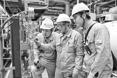 3月以来,扬子石化加氢裂化工区党员带头攻坚,依托“支委+团队”及“党员先锋岗”机制,量身定制节能降耗方案。团队从优化加工原料结构入手,调整催化柴油与焦化蜡油加工比例、控制反应转化率、优化分馏回流比,截至目前,能耗同比降低3%,创历史最好水平。图为3月17日,该工区党员攻坚队成员在现场优化调整运行参数。雷 鸣 摄 郭仕辉 文