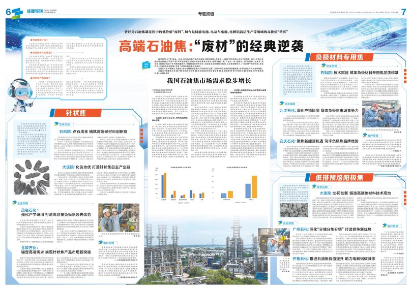 碳尽其用,点“焦”成金。过去,作为炼油副产品的石油焦,因附加值低、用途单一,面临“养在深闺人未识”的困境。如今,中国石化炼油事业部通过“用研产销”协同创新体系,以客户定制化需求为导向,按照“储备一批、产业化一批、品牌化一批”的思路,“成体系、有规范、能创效”地进行专用焦质量提升,凭借持续的技术攻关,石油焦成功突破技术瓶颈,化身高端碳材料,广泛应用于电炉炼钢、电动汽车、半导体等关键领域,实现了资源价值的最大化提升。