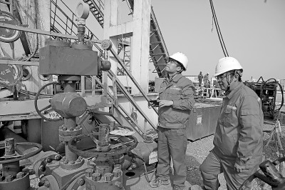 西北油田完井测试管理中心严抓现场安全风险管控,对完井测试作业现场进行全面细致的隐患排查,并对安全隐患风险进行清单化闭环整改管理,保障油气生产安全高效运行。图为3月29日安全督查人员在塔河油田TH122160井完井作业现场进行安全检查。刘红新 摄